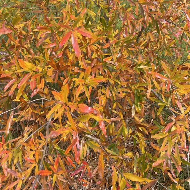 Presenta una otoñada realmente destacada de color amarillo, naranja y rosa, potenciada por la gran cantidad de pequeñas hojas que la conforman y aportan distintas tonalidades de colores. Sus hojas son alargadas de color verde brillante, y muy delgadas como hilos cuando aparecen en primavera.